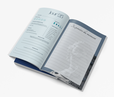 Chaque matin, une question profonde, issue du workbook (ex : Jour 1, p.11 ) t’aide à clarifier ton esprit.
